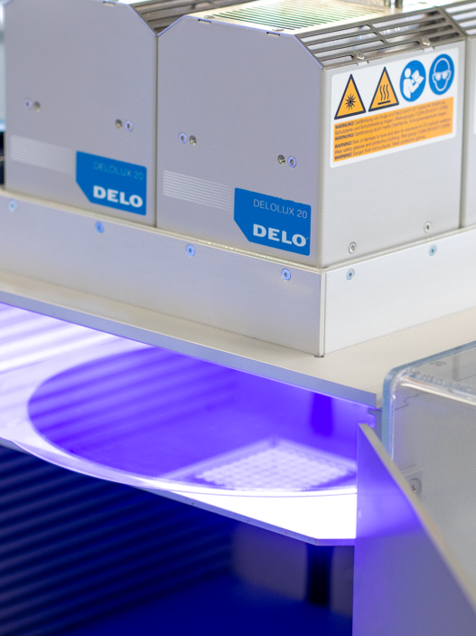 The team at ESCATEC Switzerland have built a customised UV-curing system with two 365nm light sources on the die bond head of their Tresky T6000 fully automatic machine. This solution enables ESCATEC to achieve exact positioning of components and direct snap-curing required during the passive alignment process. The enhancement accelerates and improves the process of adhesive curing during the pick-and-place operations, streamlines the manufacturing process overall, and boosts the accuracy of component placement, which is critical for the assembly of complex electronic parts.
