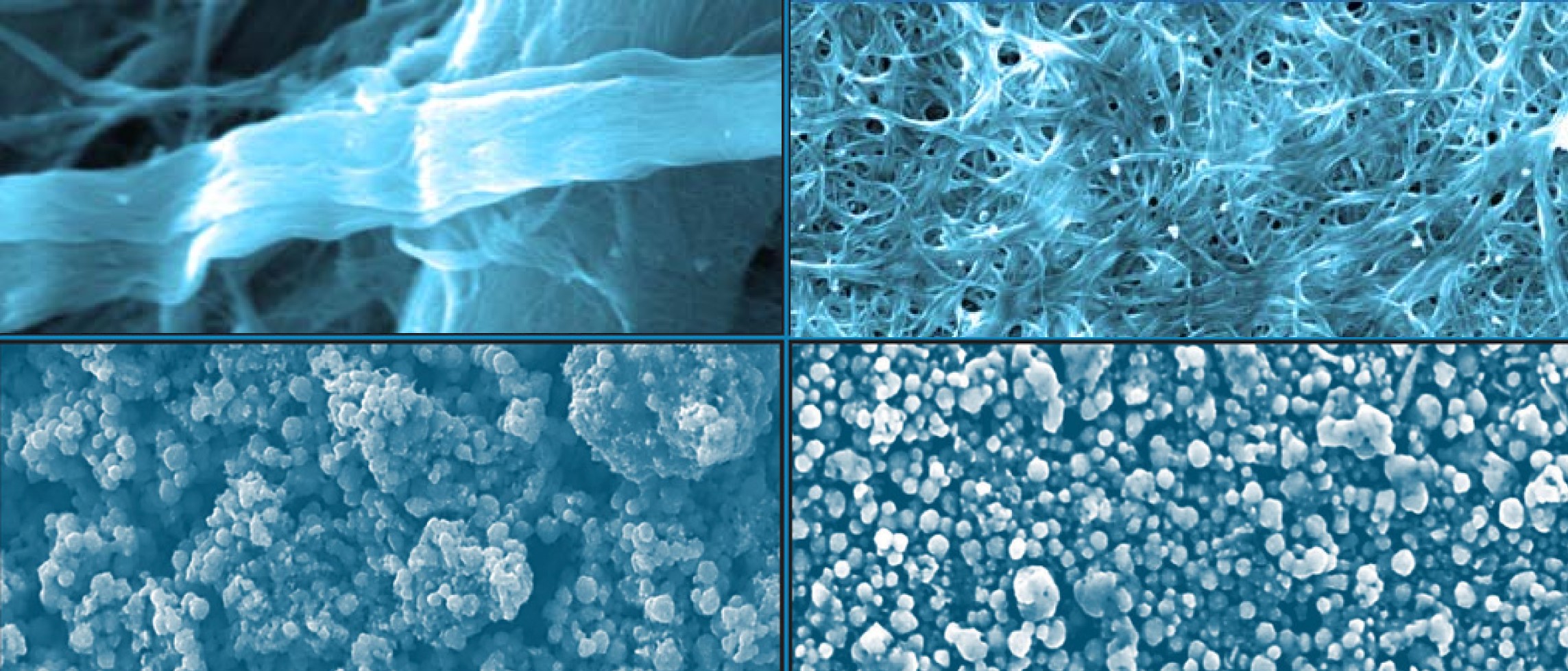 Figure 3. Images showing agglomerates prior to (left) and after cavitation processing (right) in carbon nanotubes (top) and silver microparticles (bottom).