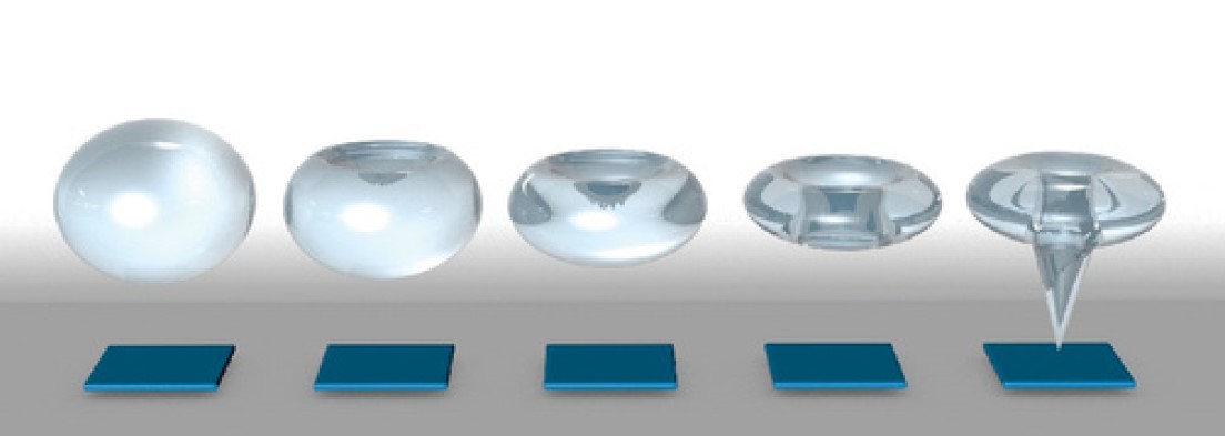 Figure 2. Schematic showing the collapse of a vapor bubble to form a liquid micro-jet during cavitation