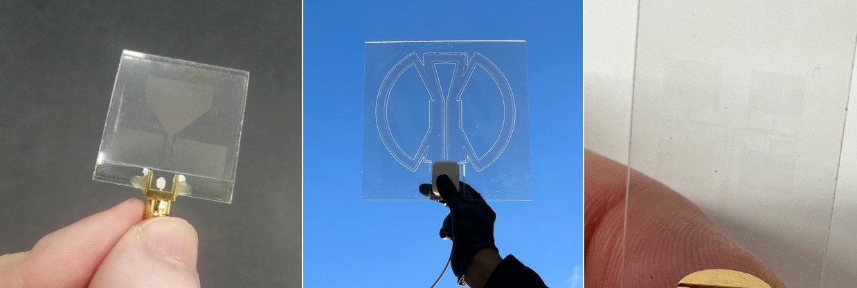 Another notable application of NANOWEB is optically transparent antennas. Transparent antennas are useful for integrating antenna functionality into transparent surfaces, such as windshields and windows (Figure 6), while maintaining visibility.