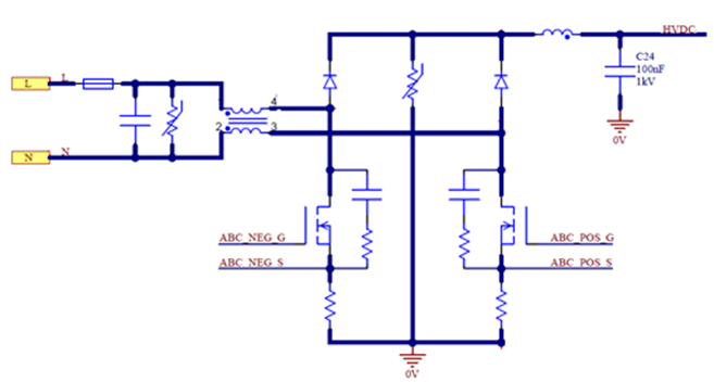 Pulsiv OSMIUM technology adapts to AC line voltage and frequency by adjusting capacitor charging time, ensuring no line current is drawn at the AC zero voltage crossing. This allows for a simple half-active bridge configuration that enhances efficiency, particularly under low-line conditions. The design carefully controls the MOSFETs in the lower half of the AC to DC bridge alongside high-side diodes, achieving a balance between efficiency, cost, and complexity while supporting universal input. This approach has resulted in efficiency gains of 0.7% at full load from a 115V AC supply.