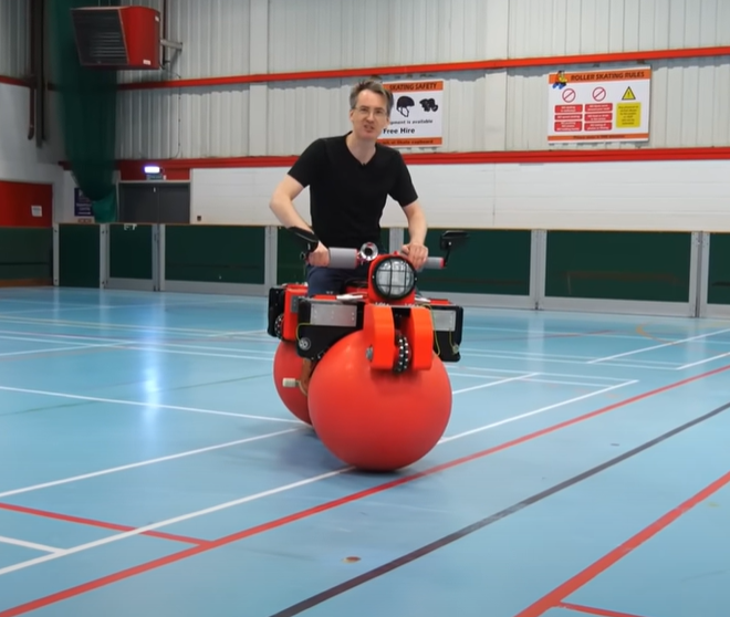 The bike’s unique design features large spherical wheels, similar to those used by circus acrobats. These allow the vehicle to move omnidirectionally, a striking departure from conventional cycling.