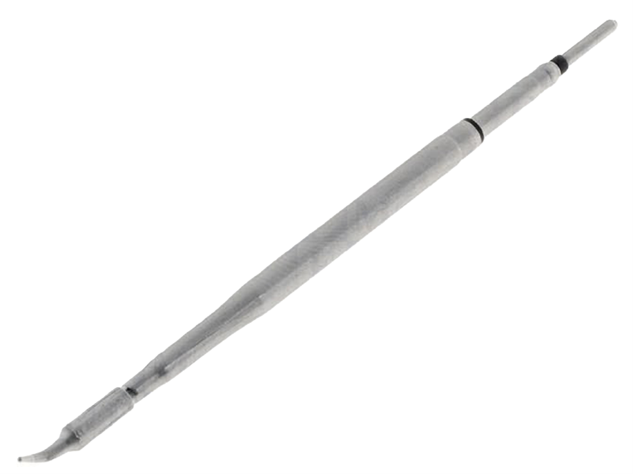 The popularity of surface mount devices (SMDs) has created the need to develop a new technique for hand soldering and desoldering of components. They are very small elements, which are often densely packed on the PCB. This is due to the fact that, in most cases, they are machine-mounted. However, service works are still most often performed manually, and sometimes, to make them easier, special micro tweezers, whose jaws are a pair of hot soldering tips, are used. They make disassembling a small resistor or capacitor a very simple task. They also make handling and soldering components easier. As you might have guessed, tips for such tweezers often (although not always) come as a pair. They are often characterised by a bent ending, which facilitates grasping.