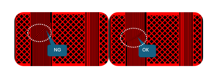 Acute angles create stress concentration points. In flex zones, use curved traces or bends at obtuse angles to prevent cracking or delamination. Smooth routing ensures better mechanical durability, especially over repeated bends.