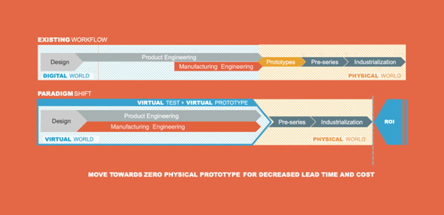 Figure 1. Virtual prototypes and virtual testing accelerate the development process and time to market at a lower cost versus transitional approaches (courtesy of ESI Group)