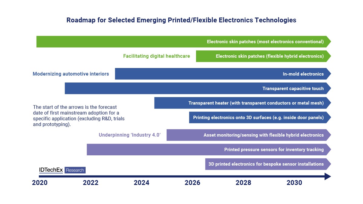 Roadmap for selected emerging printed/flexible electronics technologies. Source: IDTechEx
