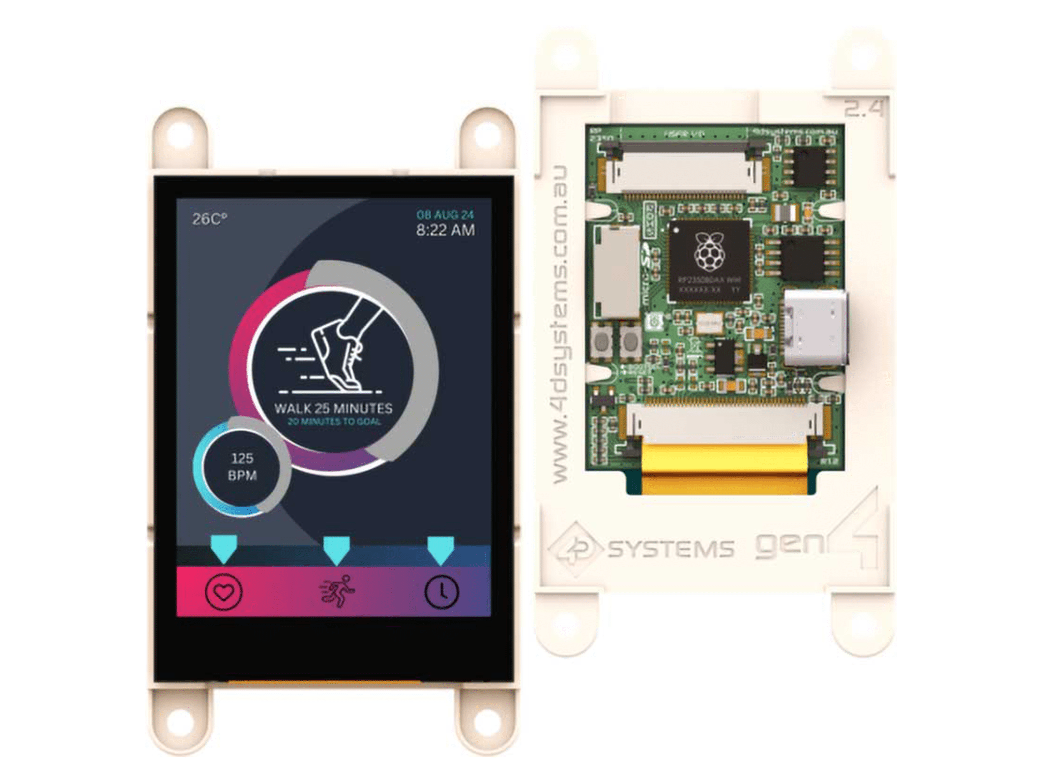 In the gen4-RP2350 series it is the Raspberry Pi chip that forms the heart of the circuitry. Below we will look at the capabilities of the microcontroller, however, let’s first note how wide a choice of displays 4D Systems offers. Within this series, we find models with diagonal sizes from 2,4 inches to 9 inches, with resolutions of 240 x 320, 320 x 480 (vertical versions) and 800 x 480 (horizontal versions). Their brightness can reach up to 600cd/m2, which allows the content to be presented clearly even when surrounded by intense lighting (e.g. ceiling lights of an office or machinery park). Customers can choose between versions equipped with resistive or capacitive touch panel (as well as options without a touch interface). Design features include the low profile of the displays and their adaptation for fixing (holes).
