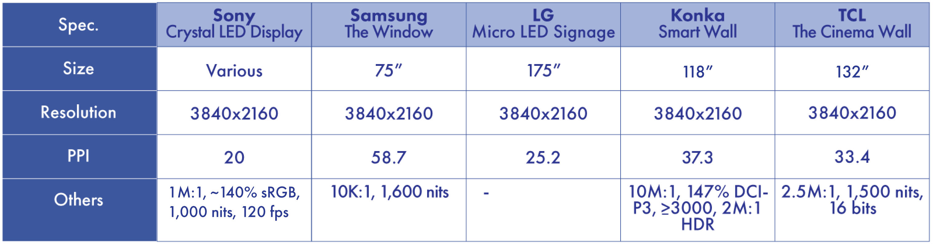 A selection of Micro- and Mini-LED displays, compiled by IDTechEx