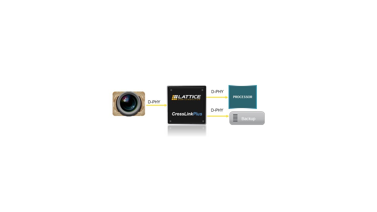 Figure 5: In this ADAS vision system, the CrossLinkPlus FPGA is duplicating the camera signal output to send to both the application processor and a data backup.