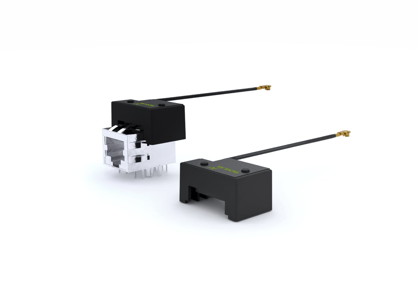 By integrating the antenna with the RJ45 jack, the AntJack eliminates the need for PCB-mounted antennas, freeing up critical PCB real estate. The RJ45 jack also serves as the antenna’s ground plane, further improving wireless performance. This design makes the FXM100 an omnidirectional dipole antenna that supports Bluetooth, Wi-Fi 6/6E, and Wi-Fi 7, making it an ideal solution for industrial robotics and test and measurement systems.