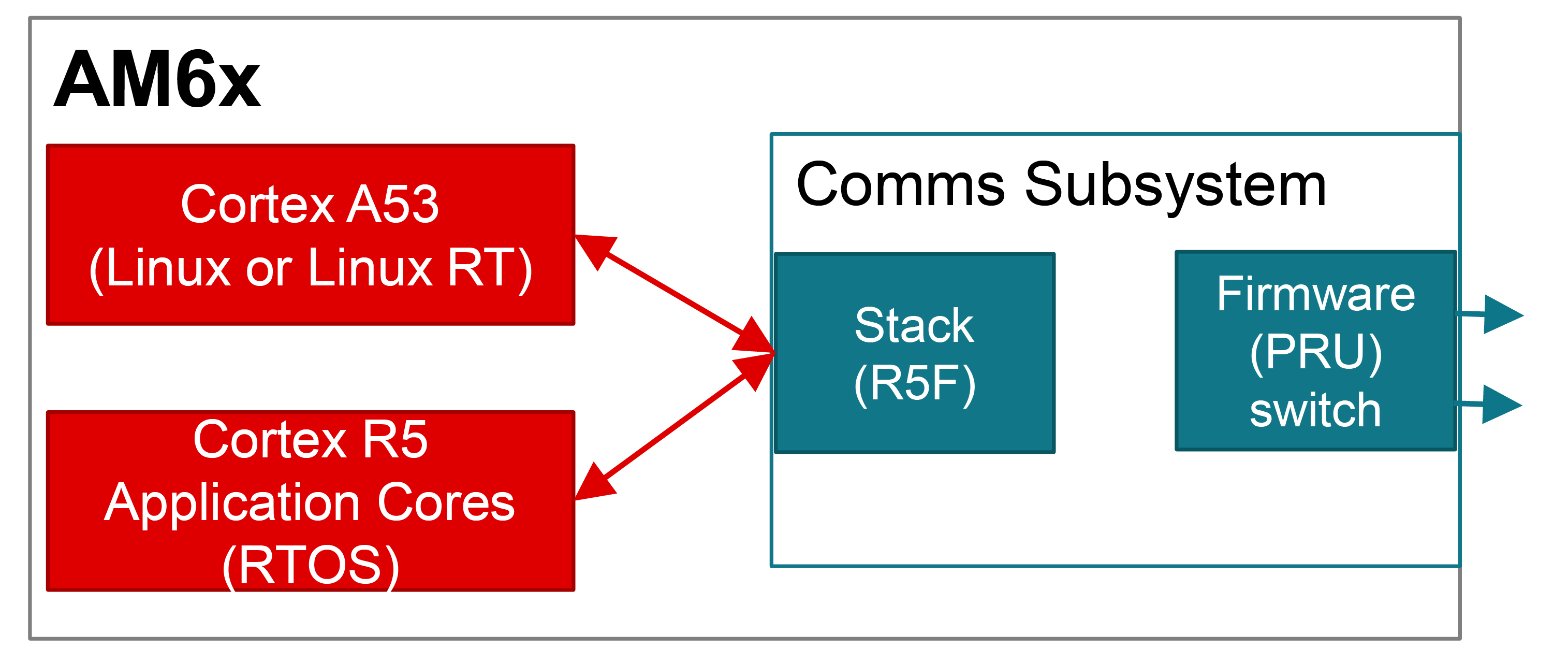 As seen in Figure 3, the Sitara processor family has multiple Arm Cortex-A53 cores for HLOSs, Arm Cortex-R5F cores for RTOS or bare-metal applications, and PRU-ICSS for the industrial Ethernet MAC.