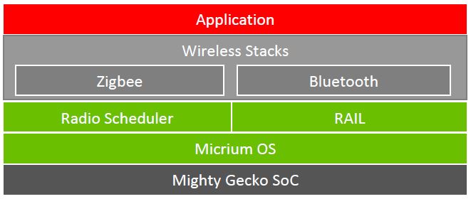 The multiprotocol design is enabled by Silicon Labs’ wireless software development kits (SDKs) and Micrium operating system (OS). Pannell highlighted that the OS controls the radio scheduler and the radio abstraction interface layer. The radio scheduler can be configured to multiplex the radio architecture between the stacks above, and the abstraction interface layer is the element that configures the radio for the protocol. Each of these layers have different ways of ‘talking’, so the OS, radio scheduler, and abstraction interface layer work in harmony to allow the stacks to communicate over the air. On the top of all these layers, the customer writes their application without having to worry about the details of the chip.