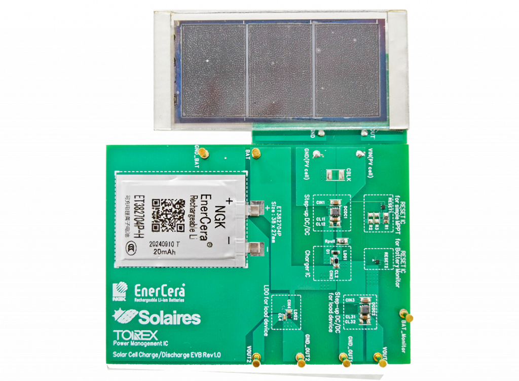 NGK Insulators and Torex Semiconductor have jointly developed a next-generation charging module equipped with EnerCera and advanced solar cells, such as organic thin-film and perovskite solar cells.