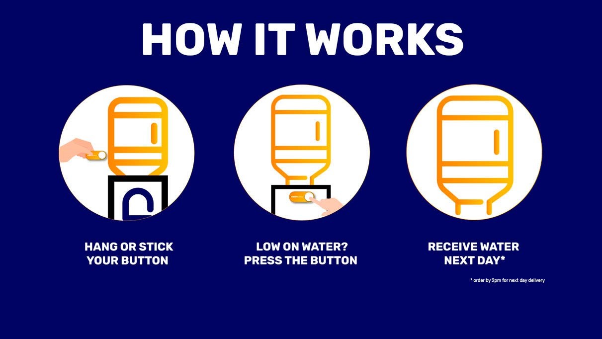 Normally businesses and customers of bottled water coolers – particularly those outside of the major cities – must contact a water delivery company by traditional means, and there is no guarantee when they will get their water. This is a big problem for customers, especially when their water is low or has run out completely. With the Hydrate.Direct button, customers can now simply press the button when their water is running low and they get their new water delivered next day. This simplifying of the ordering process has given control back to the customer.