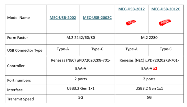 Leveraging the popular M.2 2280 form factor, the MEC-USB-2012 series is designed for easy integration into a wide range of embedded systems. This compact design, combined with PCIe x2 interface support, allows for efficient use of internal space while delivering exceptional performance. The included bracket and necessary cables further simplify installation, making it an ideal solution for both new designs and upgrades to existing systems.