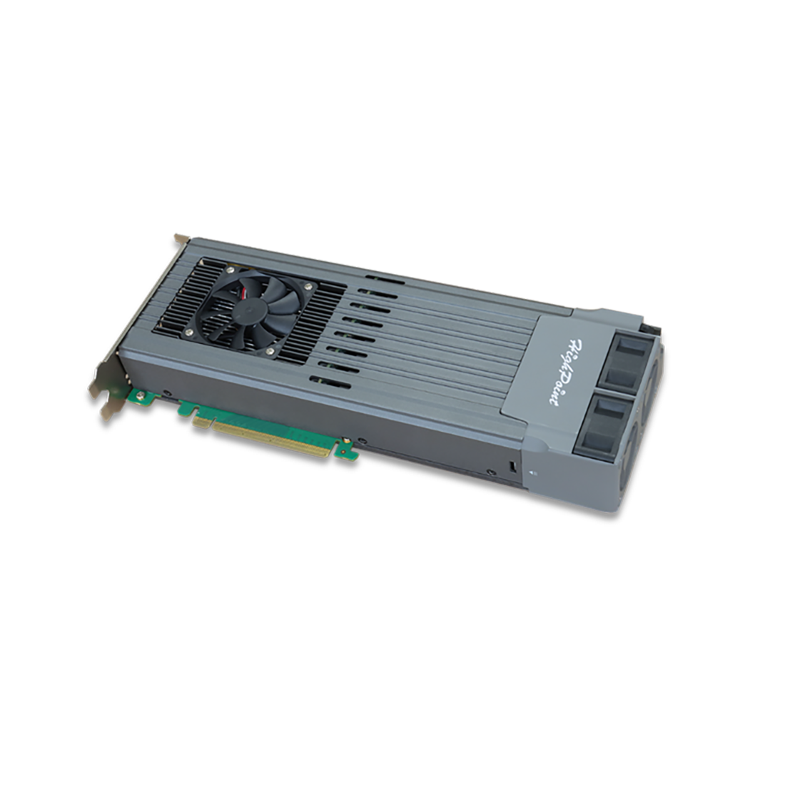 The RocketAIC 7749M2’s advanced, three-pronged, dual-width NVMe cooling system leverages a full-length aluminium casing and heat sink, a trio of powerful low-decibel cooling fans, and a unique SSD mounting system to enhance reliability and stave off the threat of thermal throttling.