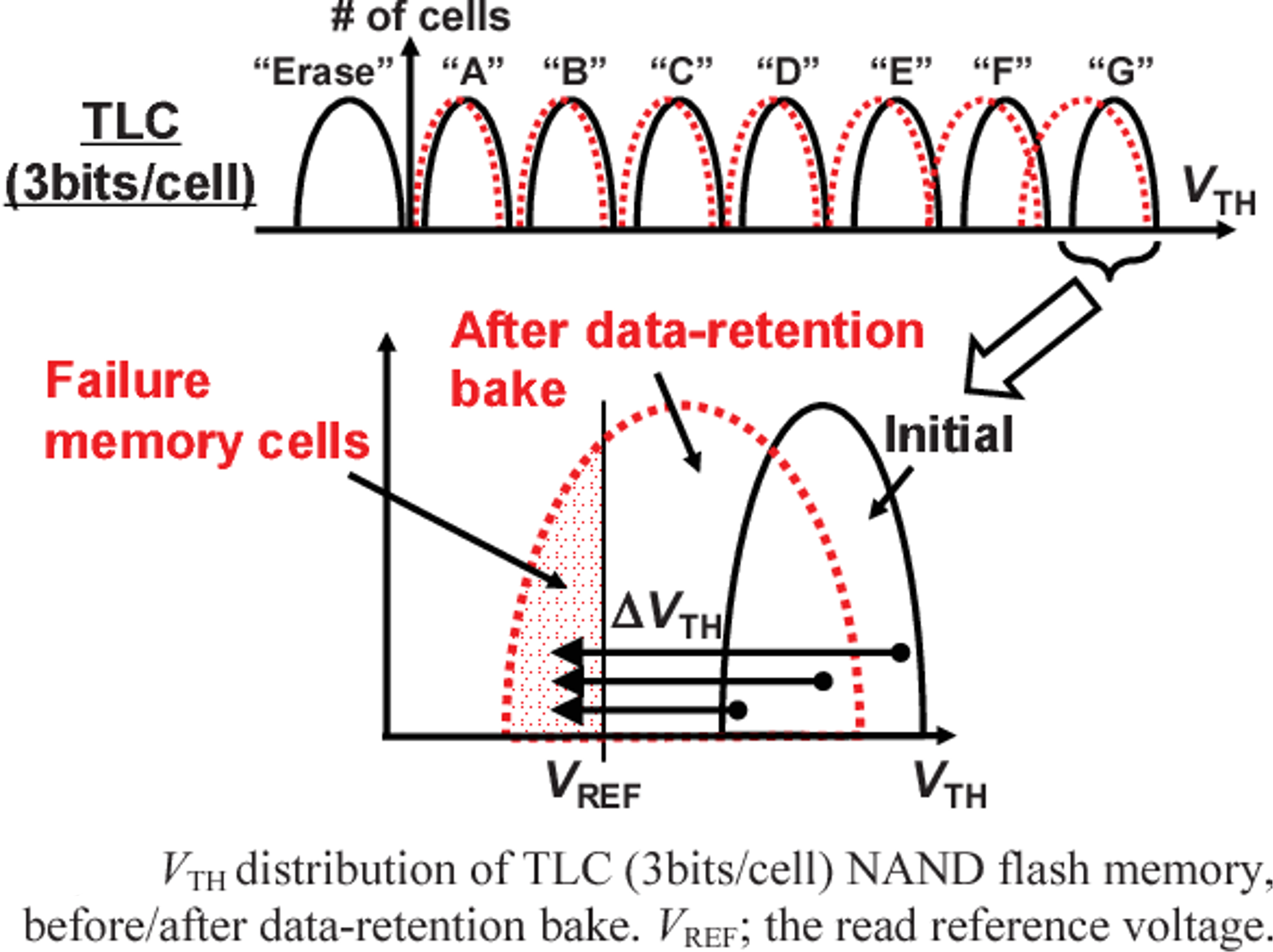 - As NAND flash cells age and undergo P/E cycling, their ability to retain charge (and data) diminishes over time due to charge leakage
