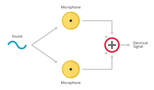Figure 1. Combining processed signals from multiple microphones can boost the desired signal and minimise unwanted background noise.