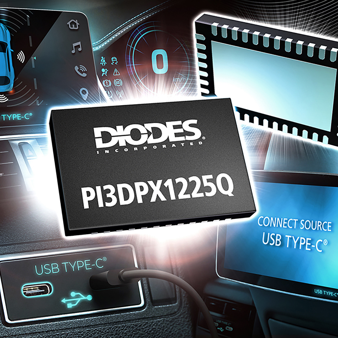 The compact PI3DPX1225Q switches USB 3.2 and DisplayPort 2.1 signals through a USB Type-C connector, and delivers low-latency connectivity with high signal integrity for smart cockpits and rear-seat entertainment systems.