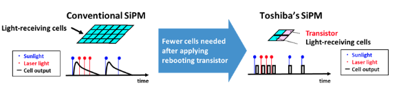 Toshiba will continue R&D to further extend LiDAR measuring range, raise resolution and advance miniaturisation, with the target of practical use of the SiPM in FY2022.