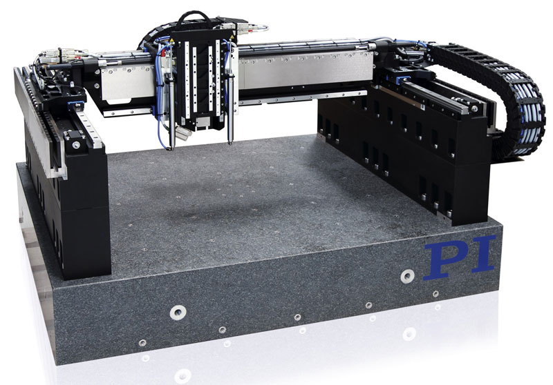 Image 3: The gantry systems with a high stiffness but lightweight motion platform offer high throughput with low levels of resonance. Optimised cable and services management allows the addition of a vertical stage, autofocusing sensors and a laser delivery system. (Image: PI)