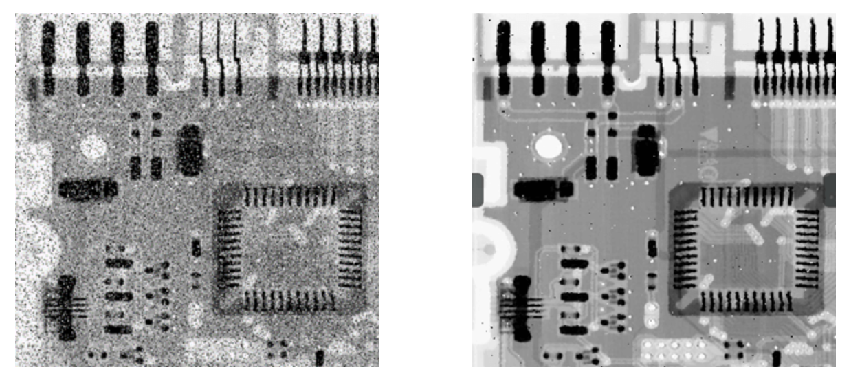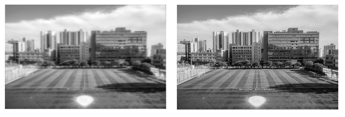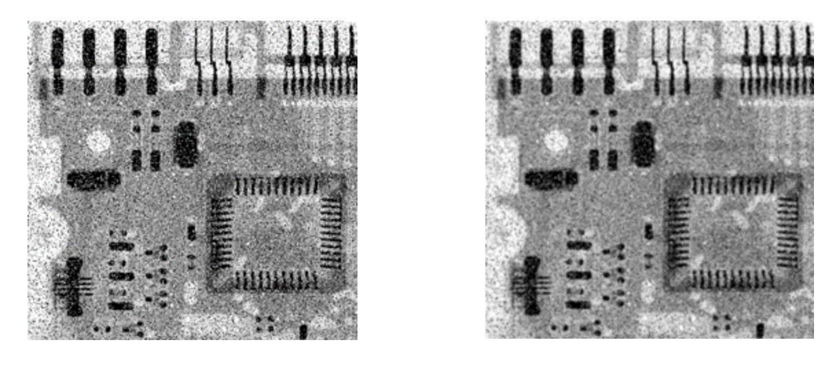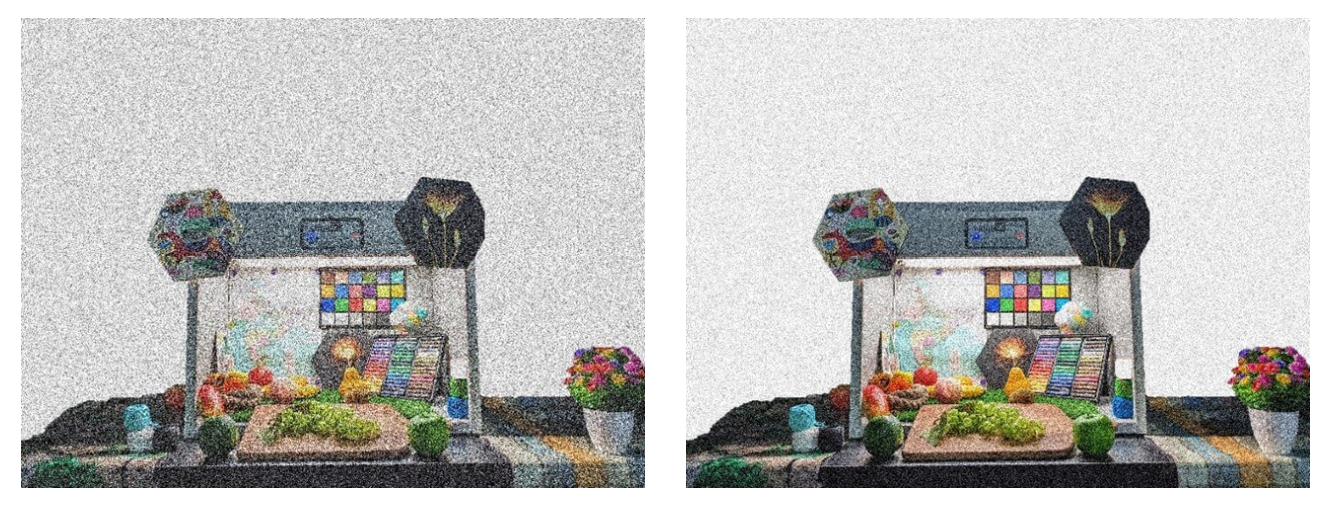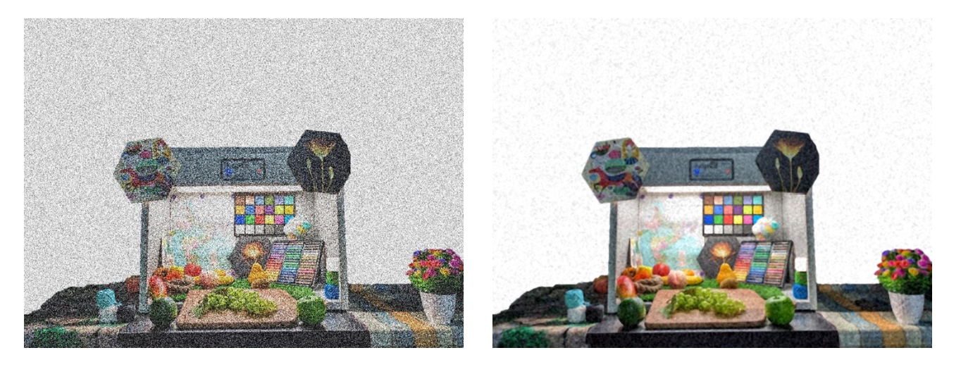 The following figure shows the before and after of an image that has undergone average smoothing denoising.