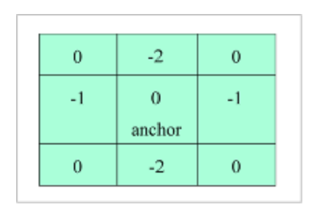 Convolution is done using a small matrix called a kernel or filter comprised of integers. Differently sized kernels containing different patterns of numbers produce different results under convolution. The size of the kernel is arbitrary, but 3×3 is used more often. The anchor point in the kernel (See Figure 1) is used to know the position of the kernel with respect to the image.