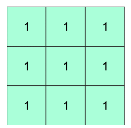 In average smoothing, the intensity difference between pixel-to-pixel (i.e., the noise in the image) is reduced by an averaging technique. The kernel/matrix used in average smoothing is shown below.