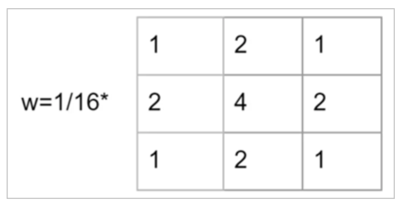 To apply the Gaussian filter, you convolve the image with this kernel (Figure 4) kernel using standard convolution techniques. The resulting pixel value at each position is a weighted average of the surrounding pixels, with higher weights assigned to closer neighbours according to the Gaussian distribution.