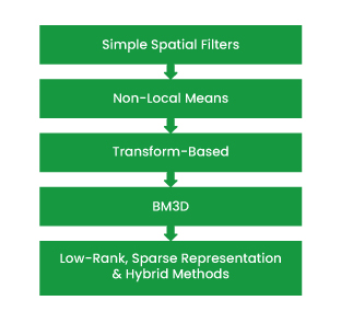 Each noise type requires suitable denoising approaches for optimal results. Let us look into the evolution of denoising methods in cameras for the removal of image noise, encompassing both simple and complicated forms.