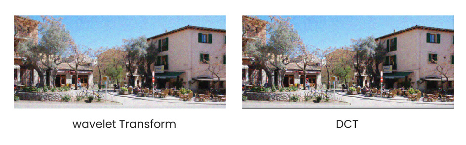 Wavelet denoising generally introduces fewer artifacts than DCT, thanks to its localised, multi-scale processing. While DCT is more computationally efficient, it is more prone to blocking artifacts, especially under strong noise reduction. Both methods can produce artifacts if denoising is too aggressive.