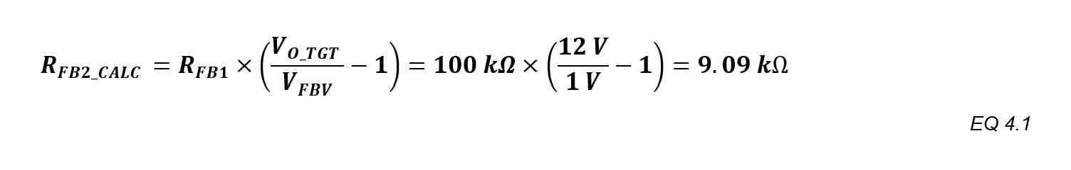 - Lower resistor: RFB2 = 9.09 kΩ 1 %