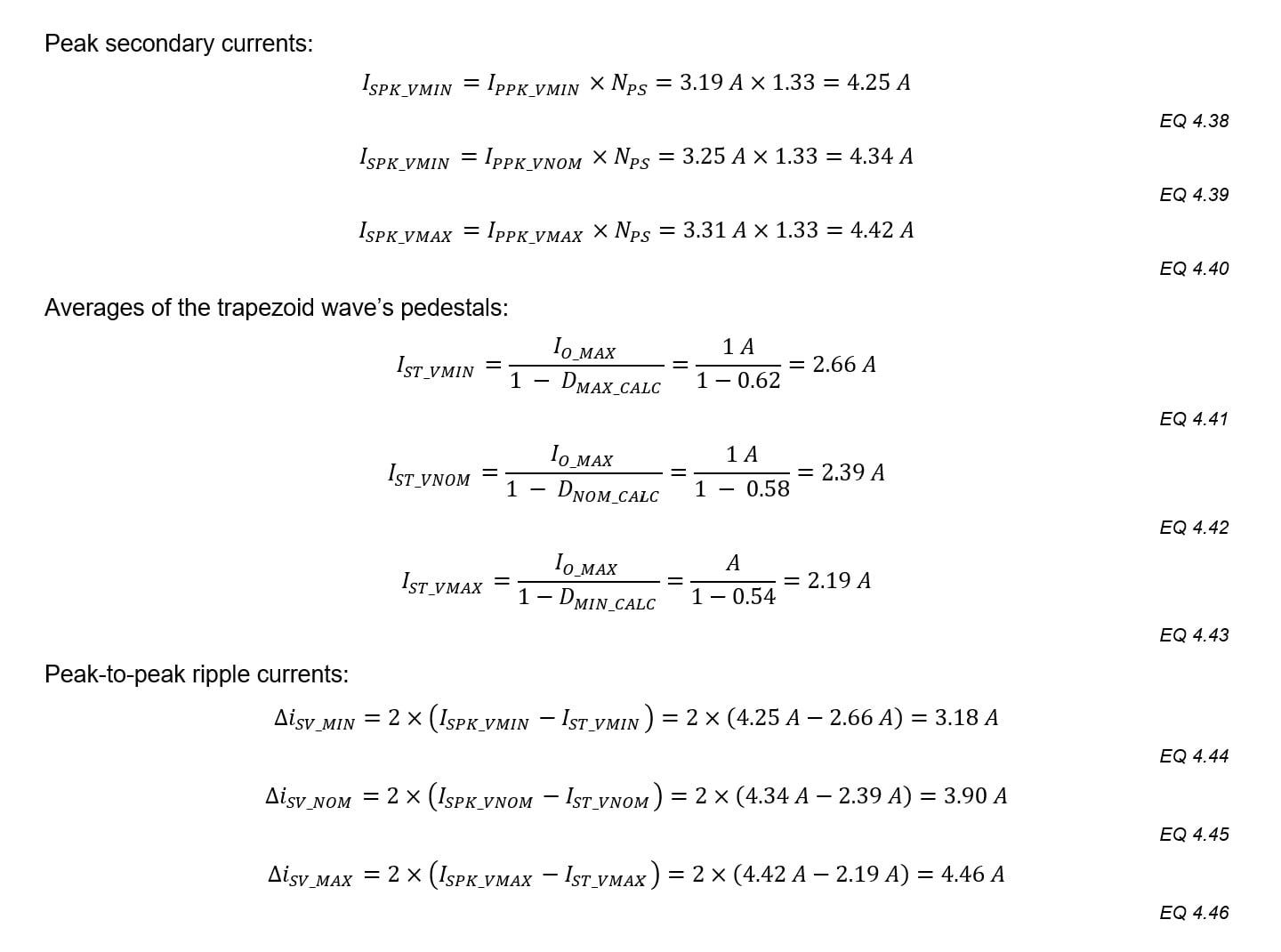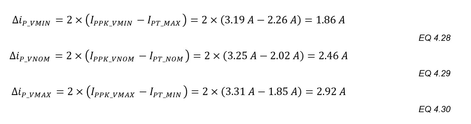 The peak-to-peak primary ripple currents: