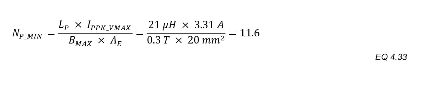 Next comes the minimum number of turns. Peak primary current has been carefully set, so the design will be more accurate using the primary turns:
