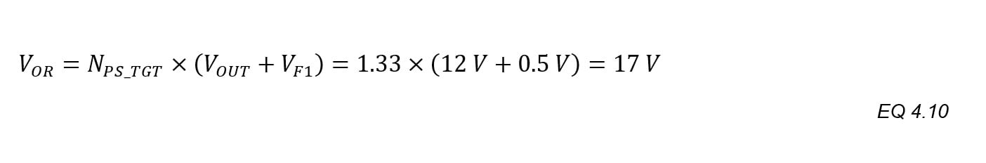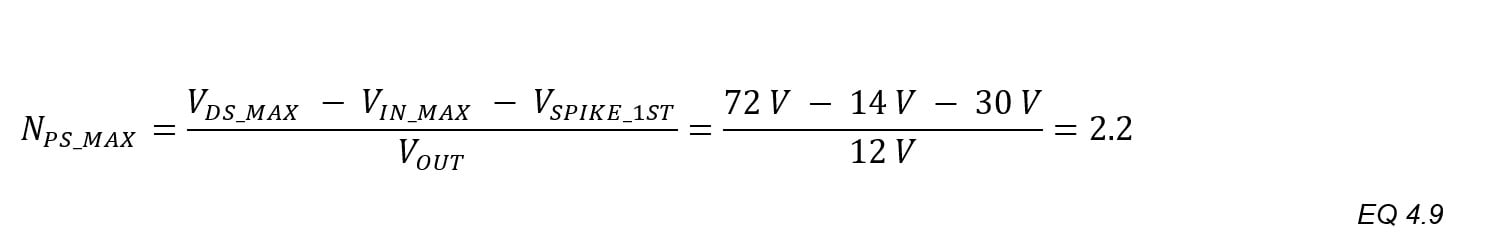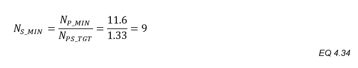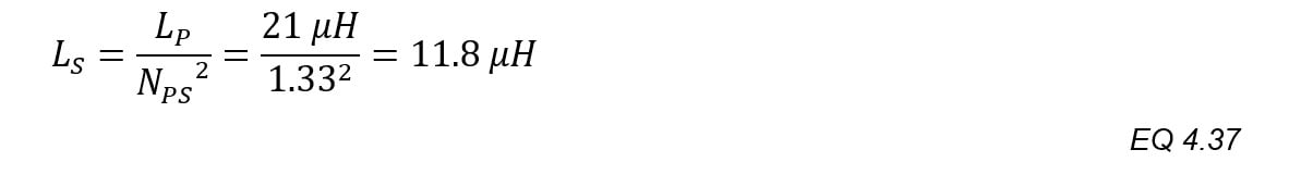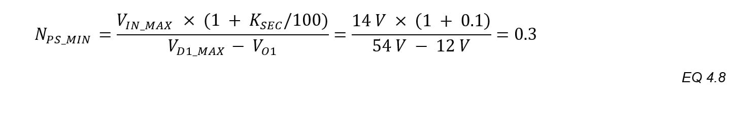 When the turns ratio NPS_TGT is greater than “1”, divide the result of EQ.4.33 by NPS_TGT to find the minimum secondary turns, and then select the next highest whole number. This generates results with whole numbers of turns.
