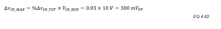 The max input voltage ripple is often not defined as clearly as ΔvO. Using 3% peak-peak of VIN_MIN is a good start. This prevents ΔvIN from affecting all the previous calculations that assume VIN is constant over the switching cycle.