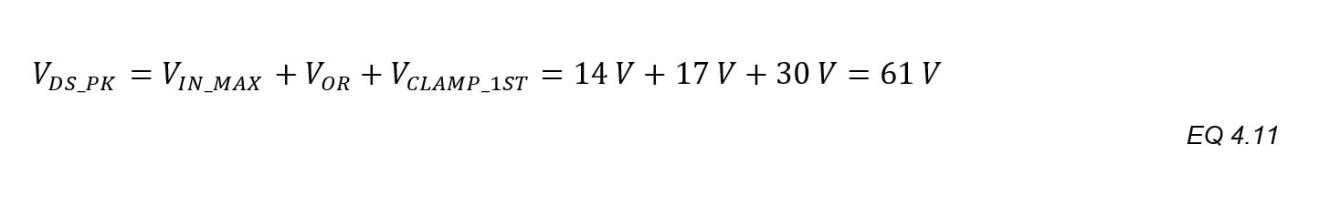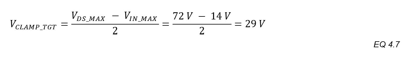 An estimate is needed for the leakage inductance spike. A clamping circuit is needed to prevent this transient from exceeding Q1’s VBR_DS. One design method is based on setting the target clamp to the midpoint between VIN_MAX and VDS_MAX: