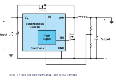 Automatic test equipment (ATE) requires four-quadrant operation for its device power supply (DPS) which can source and sink current while having positive or negative voltage. For higher current applications, multiple DPS can be used. Since the DPS can both sink and source current, the power supply for the DPS must have the same capability. The dual-output voltage rail reduces the number of bi-directional supplies needed to a single one, while still providing positive and negative bi-directional sources for the DPS. While many ICs are available that can source and sink current to make a bi-directional positive supply, the negative supply needs to source and sink current as well, as required by the device under test (DUT). A bi-directionally capable buck IC, for example, the LTC3871, can be configured to function as an inverting buck-boost converter (Figure 1).
