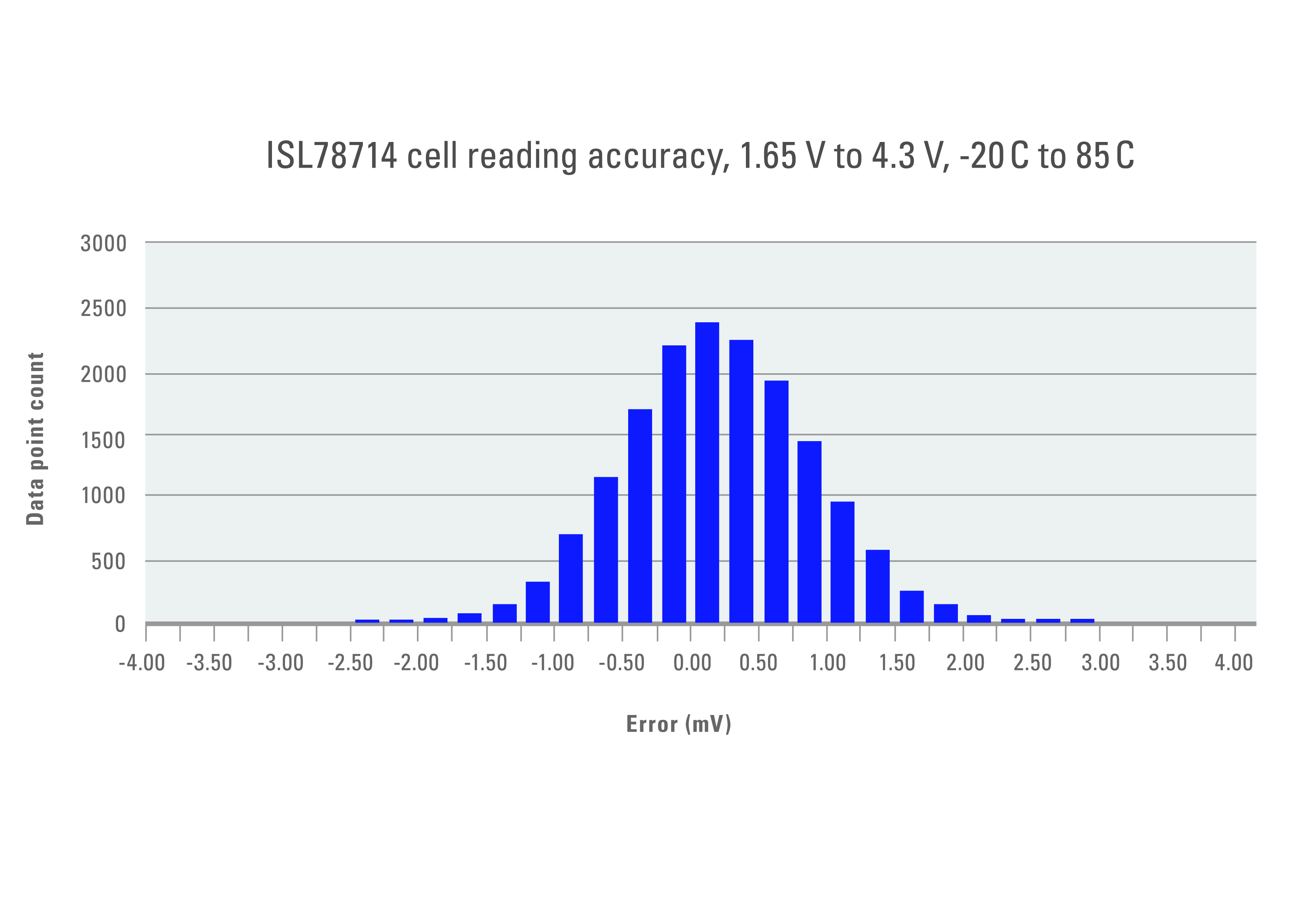 At the core of any BMS IC is a precision reference. There are various types of reference topologies. Bandgaps tend to be the most commonly used due to their optimal trade-off in accuracy versus die area, and accuracy across temperature. For example, the ISL78714 multi-cell li-ion battery manager IC uses a precision bandgap reference design that is suited to demanding automotive applications. The technology is stable, mature, well characterized, all key considerations when making vehicle battery-life calculations that directly influence a vehicle’s warranty and cost.