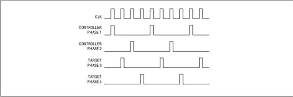 The resistor at the OVP pin designates the number of phases to the controller. This identification is used to determine how the controller responds to the primary phase’s multiphase clock signal. In a quad-phase converter, the two phases of the MAX15258 controller or the target are interleaved by 180°, whereas the phase shift between the controller and target is 90° (Figure 3).