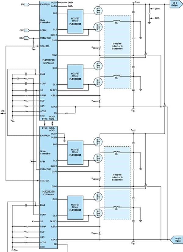 Figure 4. Quad-phase inverting buck-boost -48 VIN to +48 VOUT 800W power supply.
