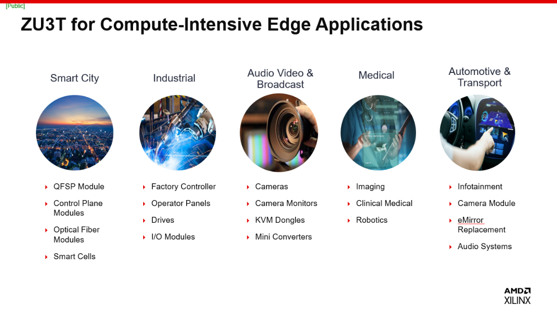 As part of the Zynq MPSoC family, the ZU3T device contains a 64-bit processor combining real-time control with soft and hard engines for graphics processing. The integration of both an Arm-based CPU sub-system for advanced analytics and on-chip programmable logic for task acceleration creates new possibilities for optimising a broad range of applications, including smart cities, camera monitors, medical imaging, and automotive infotainment.