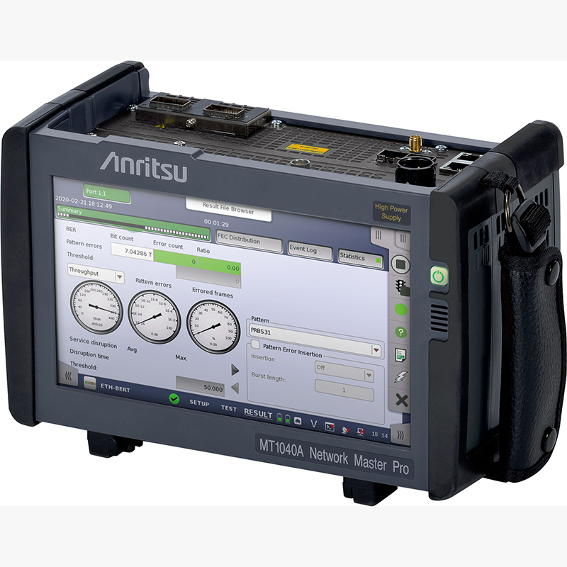 The MT1040A is a B5 size 400G handheld tester with excellent expandability and operability. It is a touch panel-operated field measurement instrument equipped with a 9” screen that is small enough to carry with a single hand. It supports a range of interfaces from 10M up to 400G.