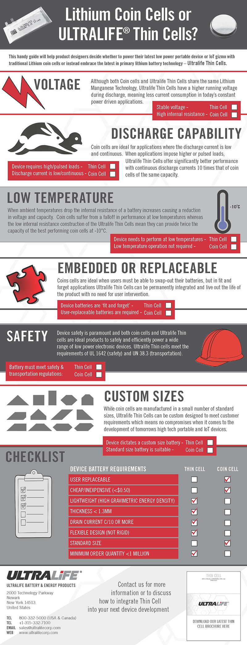 “With our infographic, we want to spread information on our new line of Thin Cell batteries, allowing engineers to make informed decisions and choose the best battery for their products. By considering the points on the infographic and working through the checklist, designers can ensure their product is powered properly.”