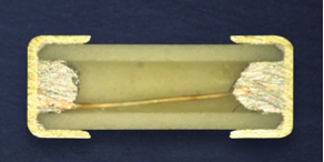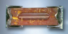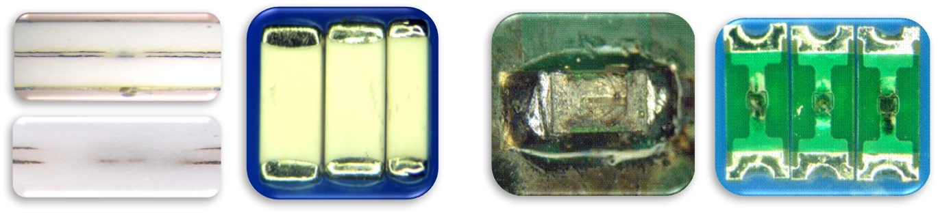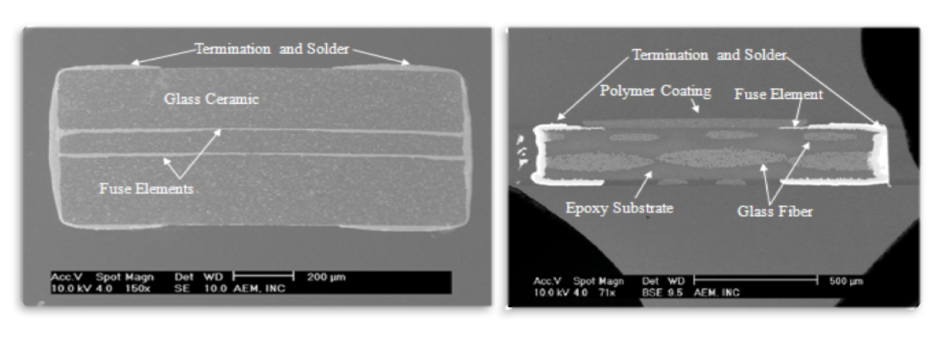 Figure 1: Photomicrograph shows cross-sectional view of ceramic and printed circuit style solid body surface-mount fuses