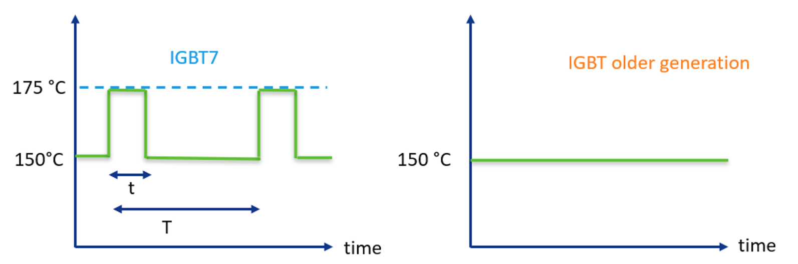 Figure 1: maximum operation junction temperature comparison between the IGBT7 and older IGBT generations