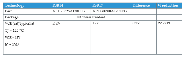 Table 1: an example comparison between IGBT4 and IGBT7 specs Vce (sat)