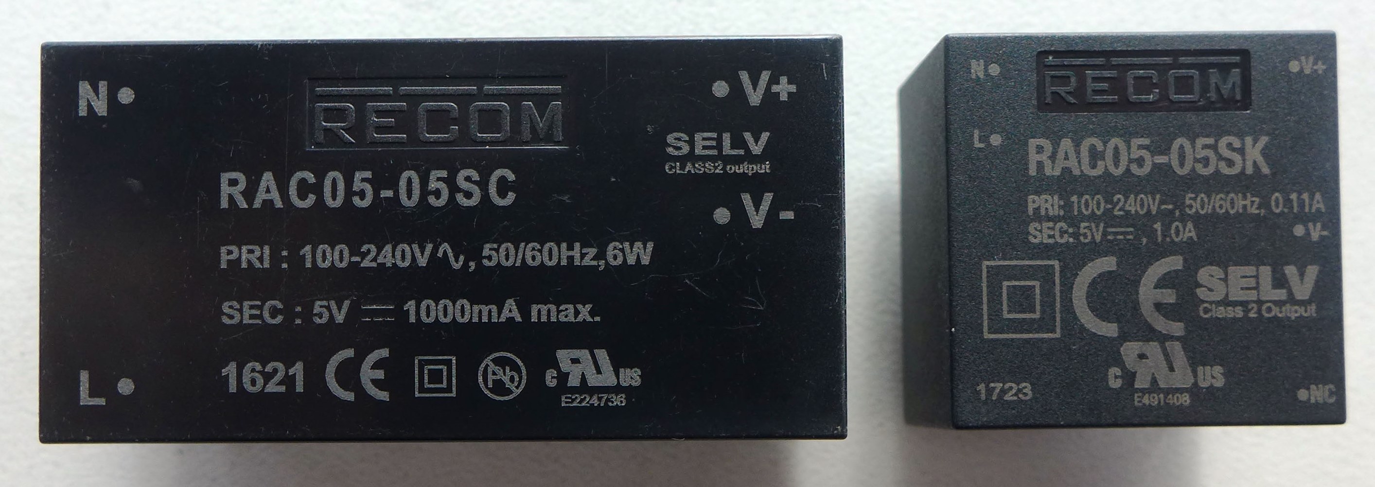 Figure 1: Comparison of a previous 5W AC/DC with the latest design from 2017. Both have the same specifications