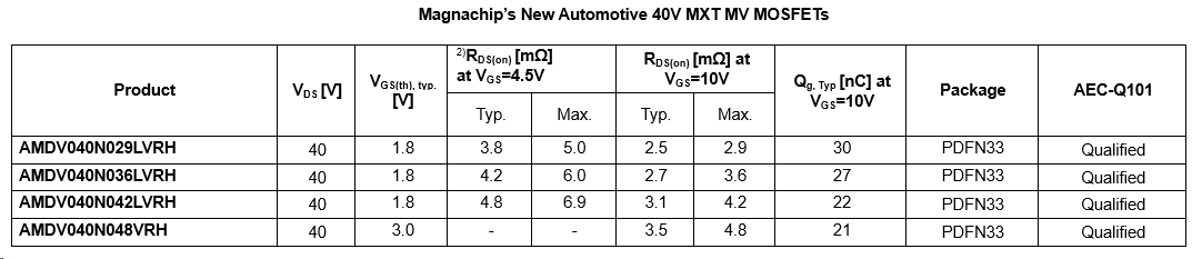 “With the launch of these new products, Magnachip has further strengthened its automotive power product lineup, which is designed to satisfy the diverse demands of the automotive components industry,” said YJ Kim, CEO of Magnachip. “We will continue to expand our global presence in this evolving market through technological innovation and stable product supply.”