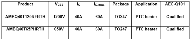 New IGBTs for EV PTC heaters